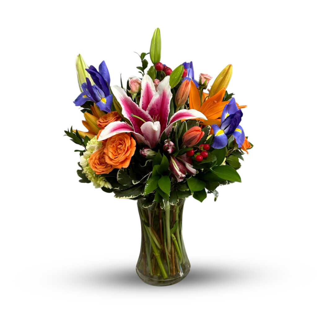 We carefully craft each arrangement using only the freshest flowers available, therefore, the colors, types and container may change according to the season and local supply. The flowers may arrive in different stages of development and will continue to bloom over the next 2-3 days, providing a prolonged life of the arrangement and a prolonged enjoyment for your recipient.